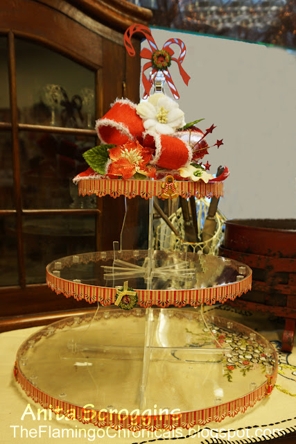 This thing is pretty amazing – you can use it for cupcakes AND Cake pops! The very best thing is it comes apart and stores FLAT- you can’t beat that! I wanted to dress mine up for Christmas so I pulled out some themed paper, a punch, and some embellishments to get started.