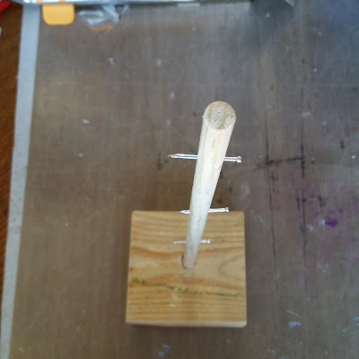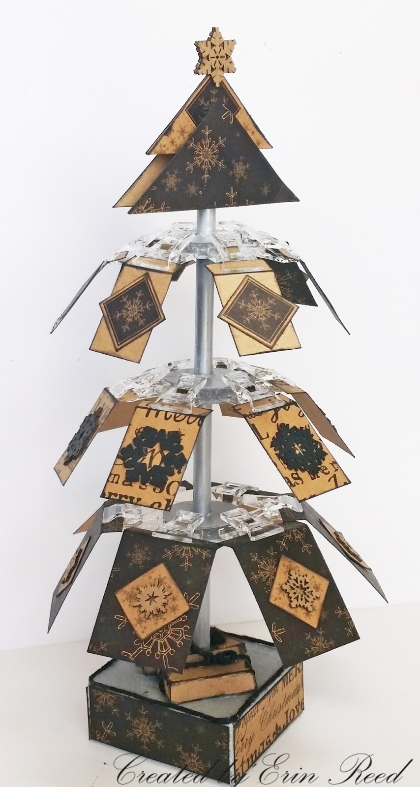 I started with a base of wood and a dowel rod, the painted it, added the Deflecto VersaGrip Double-Clip Sign Holder to make the tree tiers.  Below are some of the step to see how I created this tree.