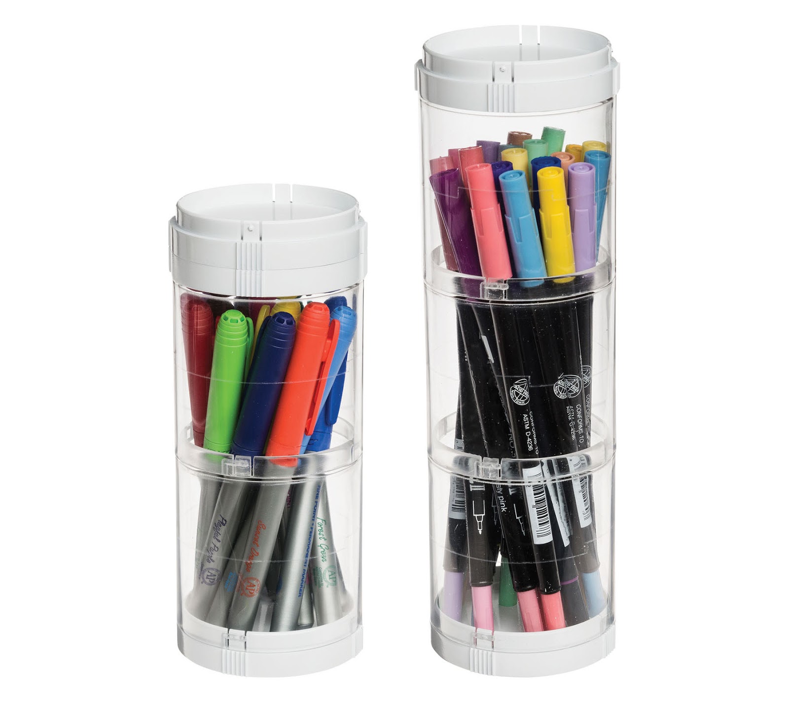 The new Interlocking Storage Organizer is great for on-the-go storage. It has an interchangeable lid / base that allows for separate canister sizes to store tape, writing instruments, embellishments, and other small supplies. Just remove the lid and connect the canisters together for taller supplies.