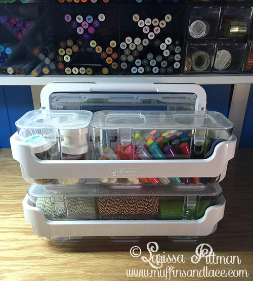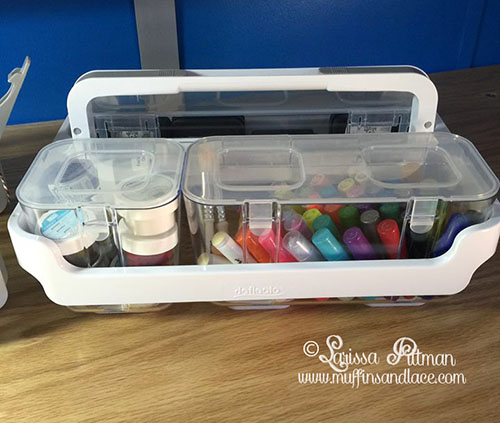 As you can see, I was able to get a lot in each container. I did try my markers in the larger container, and they do fit without the lid so another perfect idea for taking my markers back and forth.