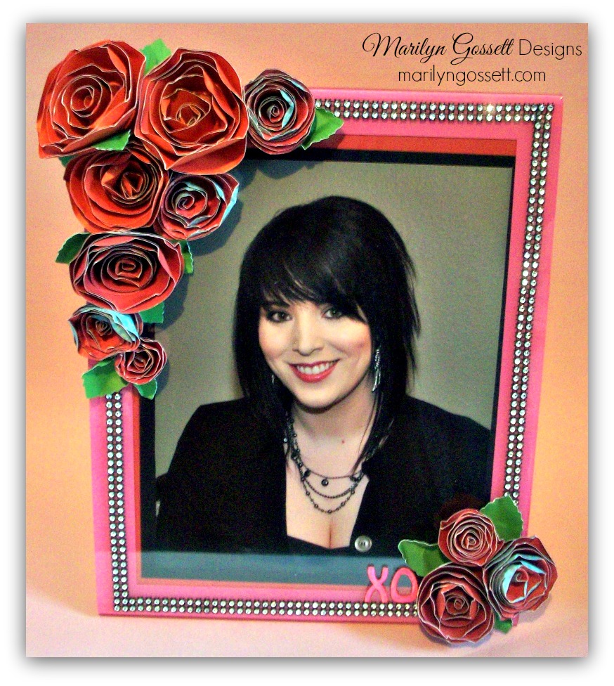 Leaves: I cut the leaves with my Cricut machine. You can opt for a die or cut them by hand. If you cut out a heart and cut it in two; you can shape each half into a leaf. Add the leaves after adhering the flowers to the frame.