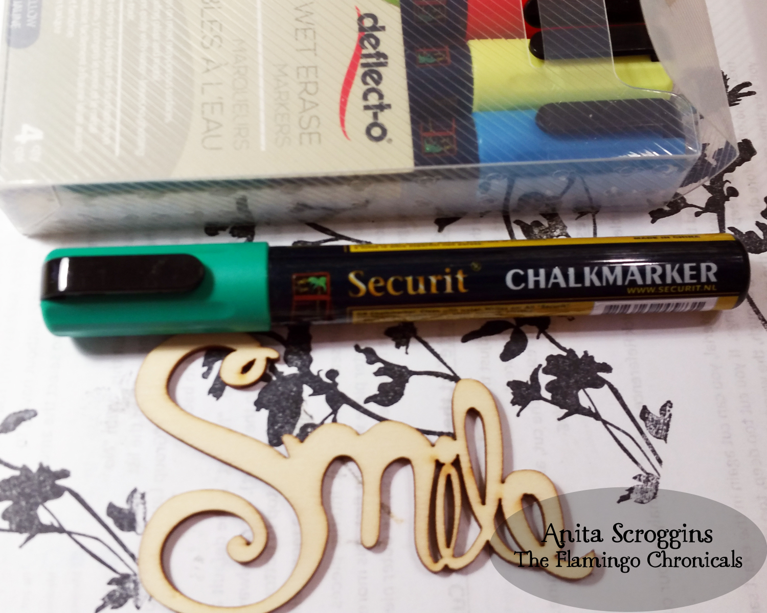 I used a wood embellishment and colored it with the green marker from the Wet Erase Marker Set.