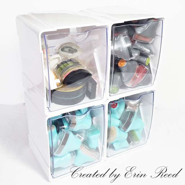 My chalk inks are now super easy to find and to organize thanks to the Deflecto Interlocking Single Tilt Bin – 4 pack! Each ink type has it’s own space and it makes to easy to bring to my desk to find what I need.