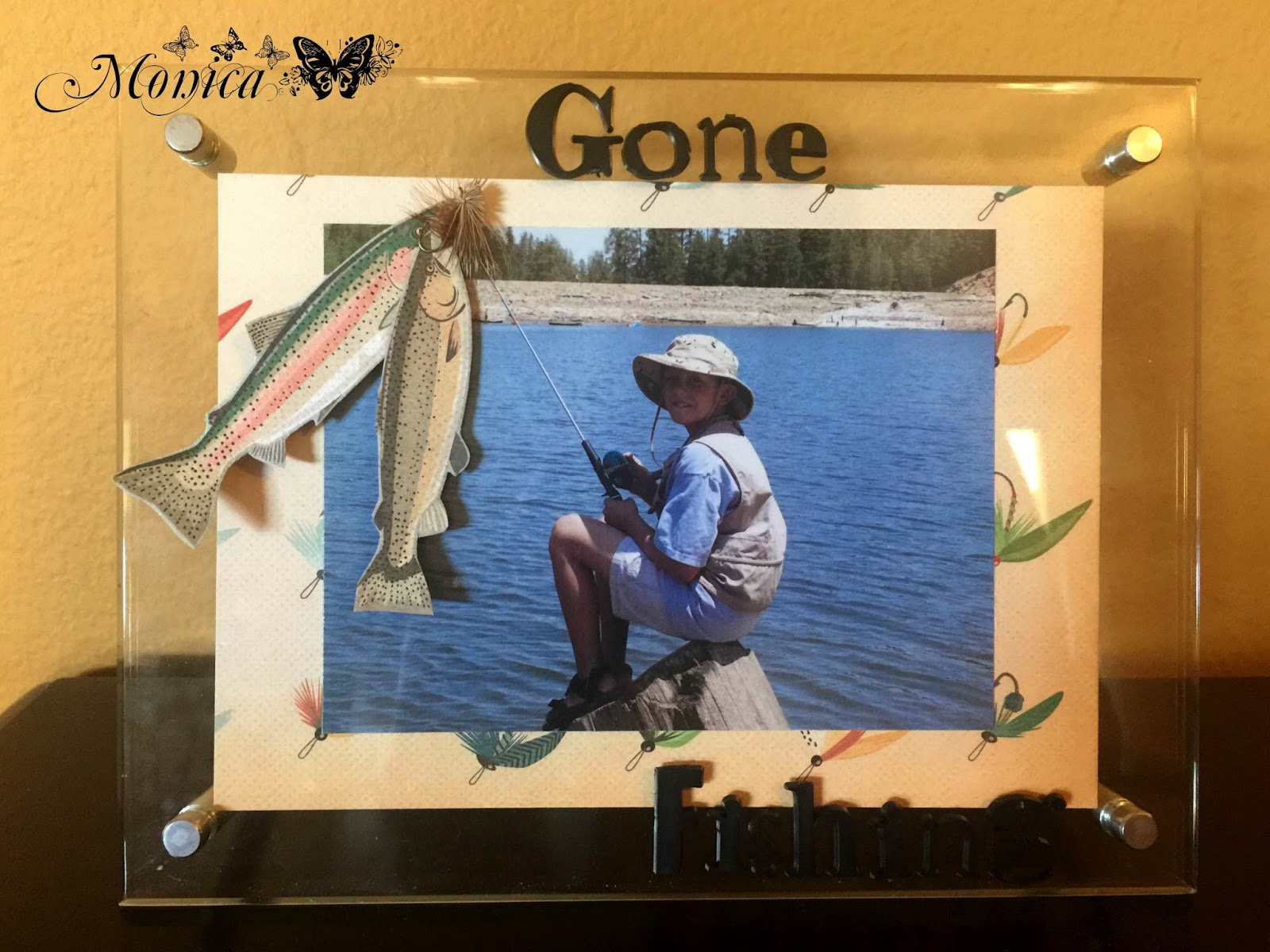 To finish off the frame, I added some black plastic letters that spelled out “Gone Fishing.”