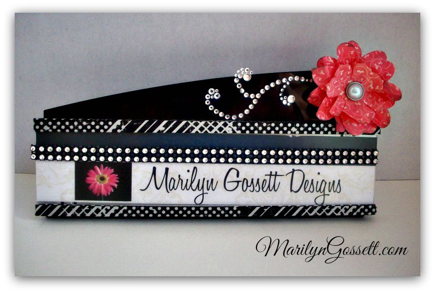 Place the assembled cardstock cover over the cube. Apply washi tape on the back side seams to secure. Decorate with the faux rhinestone self-adhesive trim. Here is how it looks after you attach the papers to the cube. You can change it up if you want to!