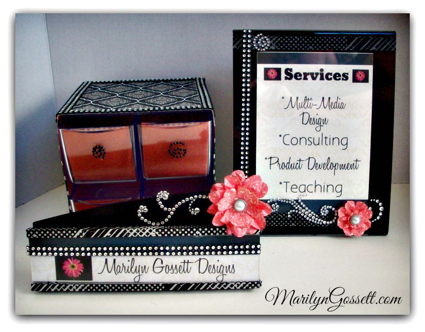 The 8 1/2″ x 11 Black Border Craft Frame, Four Drawer Stackable Cube Organizer, and Nameplate are shown below. The frame is acrylic with a black border, the storage cube is clear, and the nameplate comes in silver and black. I have customized each one to fit with my design studio, and I show how I did it below.