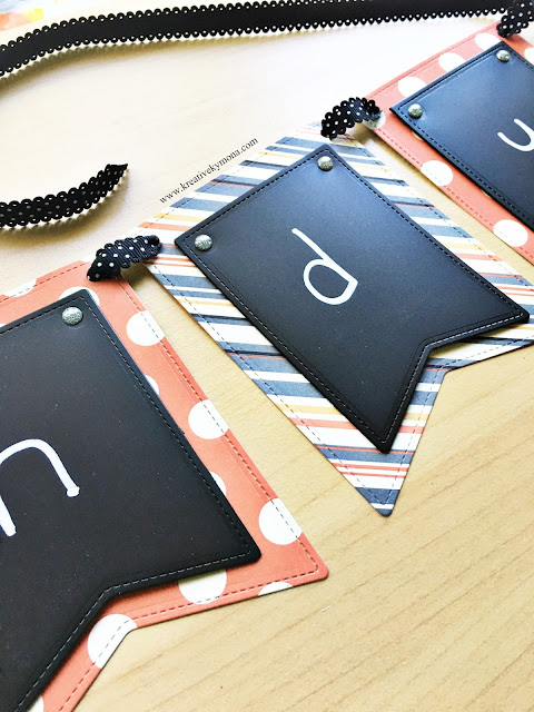 1. My daughter used a banner die and the big shot to die cut 5 large banners out of the Halloween pattern paper.