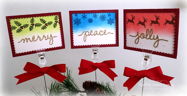 To decorate each VersaGrip Magnetic Sign I created three stamped cards using die cuts and stamps that I attached using the upper clip that is rotating. I added a ribbon bow on each head using a craft glue, and the best part is that I can remove the glue whenever I want because this head is plastic and change the color of the ribbon or add other decorations.