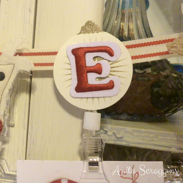 I pulled some cute die cut shapes from my Christmas box and adhered my letters one to each die cut.