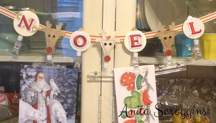 For this project, I used the Wide Clip Sign Holders and the Double Clip Sign Holders. Clip the embellished clip to a ribbon leaving the bottom clip empty for your amazing Christmas cards! (How cute are these little canvas Reindeer??)
