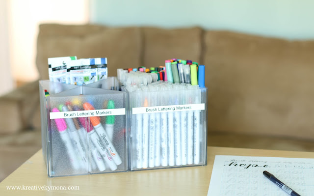 I’ve been practicing my brush lettering for awhile now, and I’ve accumulated so many different types of brush letter markers that I wasn’t sure where to store them. They were in pencil cases, drawers and other places that I couldn’t see them in plain site.