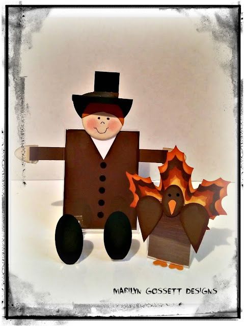 Look below for some more ideas using the mini sign holders and sign danglers. You can do a lot with basic shapes: squares, circles, rectangles, teardrops, etc. The turkey tail feathers are die-cut maple leaves.