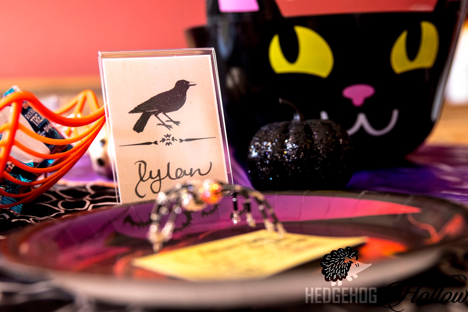 Then I thought I would show you some fun place setting ideas for a Halloween table using all the same excellent Deflecto products, Let’s look at the overall effect…
