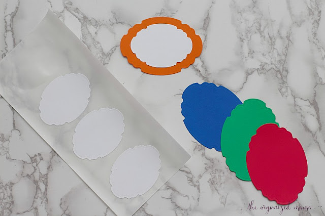 Run the label through the Creative Station again. Adhere the labels onto the interlocking tilt bins.