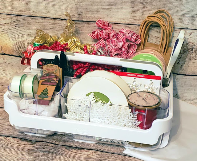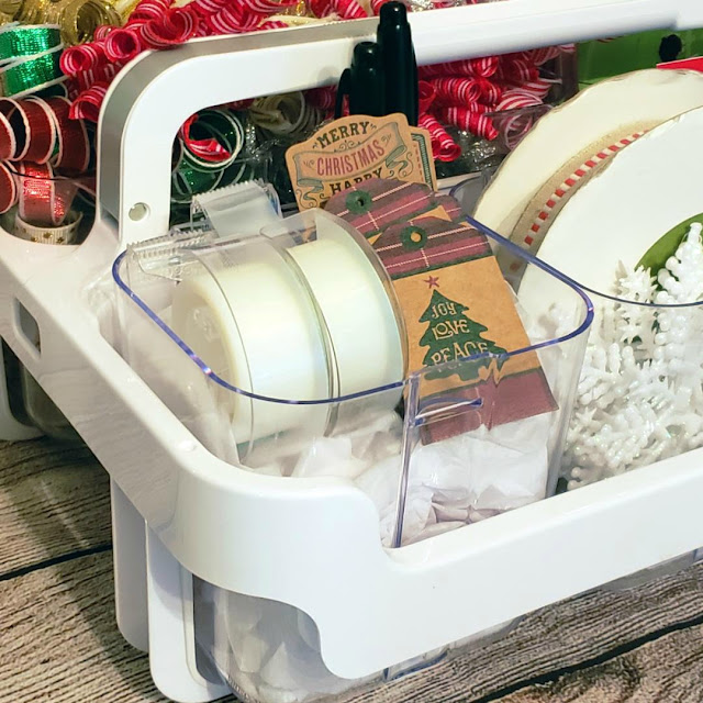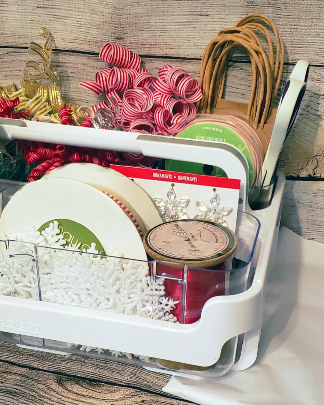 She filled her Deflecto Stackable Craft Caddy with bows, tags, scissors, pens, and embellishments. Everything you need to make your presents look extra special.