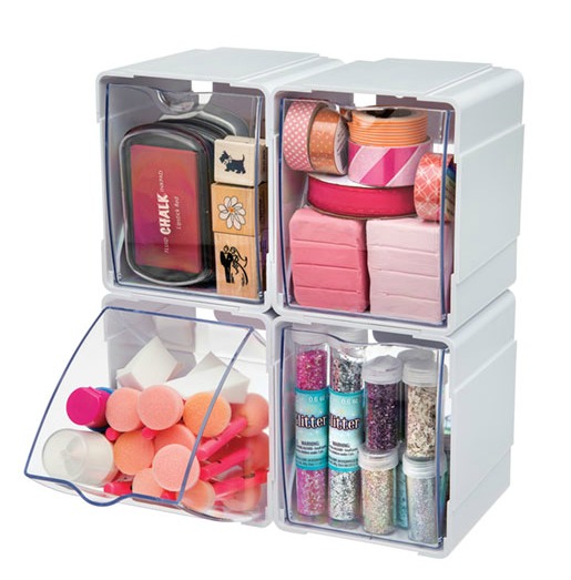 Kids are the number #1 mess makers around most homes. The Interlocking Tilt Bins are great for playdoh, Legos and other art supplies.