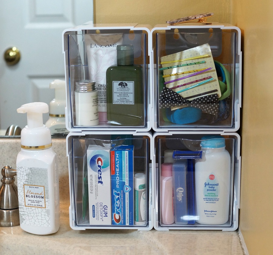 Hair ties, makeup, cotton swabs, toothpaste, you name it! Clear up the clutter on the bathroom counter.