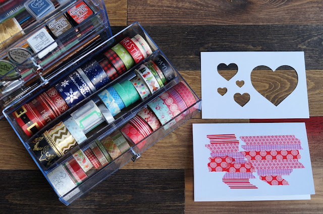 - Cover the heart outlines with several different strips of coordinating washi tape pieces.