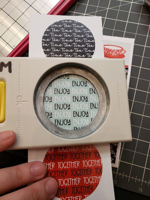 To finish up the card, punch a 2″ circle from a fourth coordinating pattern from the paper collection. Add an adhesive foam dot to the back of the circle for added dimension.