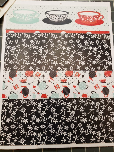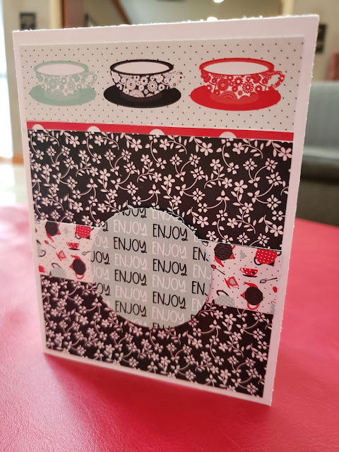 Cut the third pattern as a border strip to adhere to the front of the card.