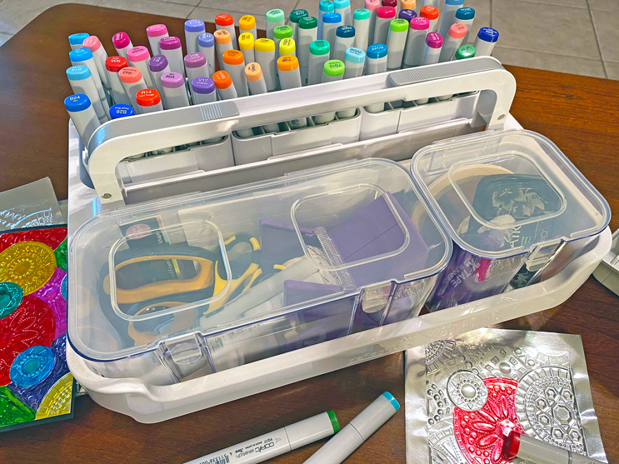 The Deflecto Stackable Caddy Organizer with the added Interlocking Marker Organizers is the perfect companion for card makers.