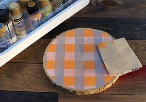 The Buffalo Plaid Wood Slice Pumpkin was created by Design Team Member Sue Eldred.