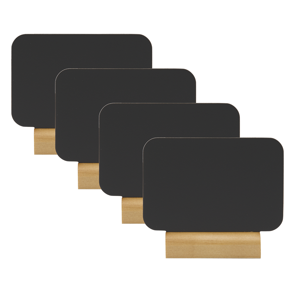 Transform any surface into an eye-catching masterpiece with Securit® Table Chalkboard. Expertly precision-cut and flexible, this chalkboard can easily be cleaned, giving you a crisp, clear slate every time. With double-sided chalkboard writing surfaces, unleash your creativity by exploring more opportunities to express your ideas. UV, shock, stain and scratch resistant, this tabletop wonder offers long-lasting durability beyond compare. Made with a lacquered wooden base and accompanied by a chalk marker, our Table Chalkboard provides both style and functionality. Elevate your decor with our versatile and resilient chalkboard today!