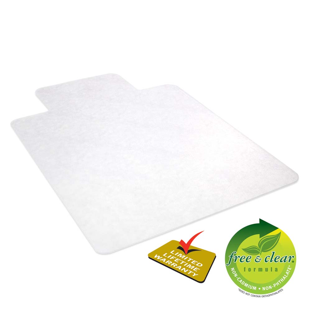 The lightweight SuperMat is an all-day use chair mat to protect wood, tile, laminate and other hard floor surfaces. Easy-glide rolling surface provides smooth office chair movement. Free and Clear® formula delivers exceptional clarity with no harsh chemicals. GREENGUARD Gold Certified for low chemical emissions and healthier indoor air. Features a Manufacturer’s Limited Lifetime Product Replacement Warranty. Made in the USA