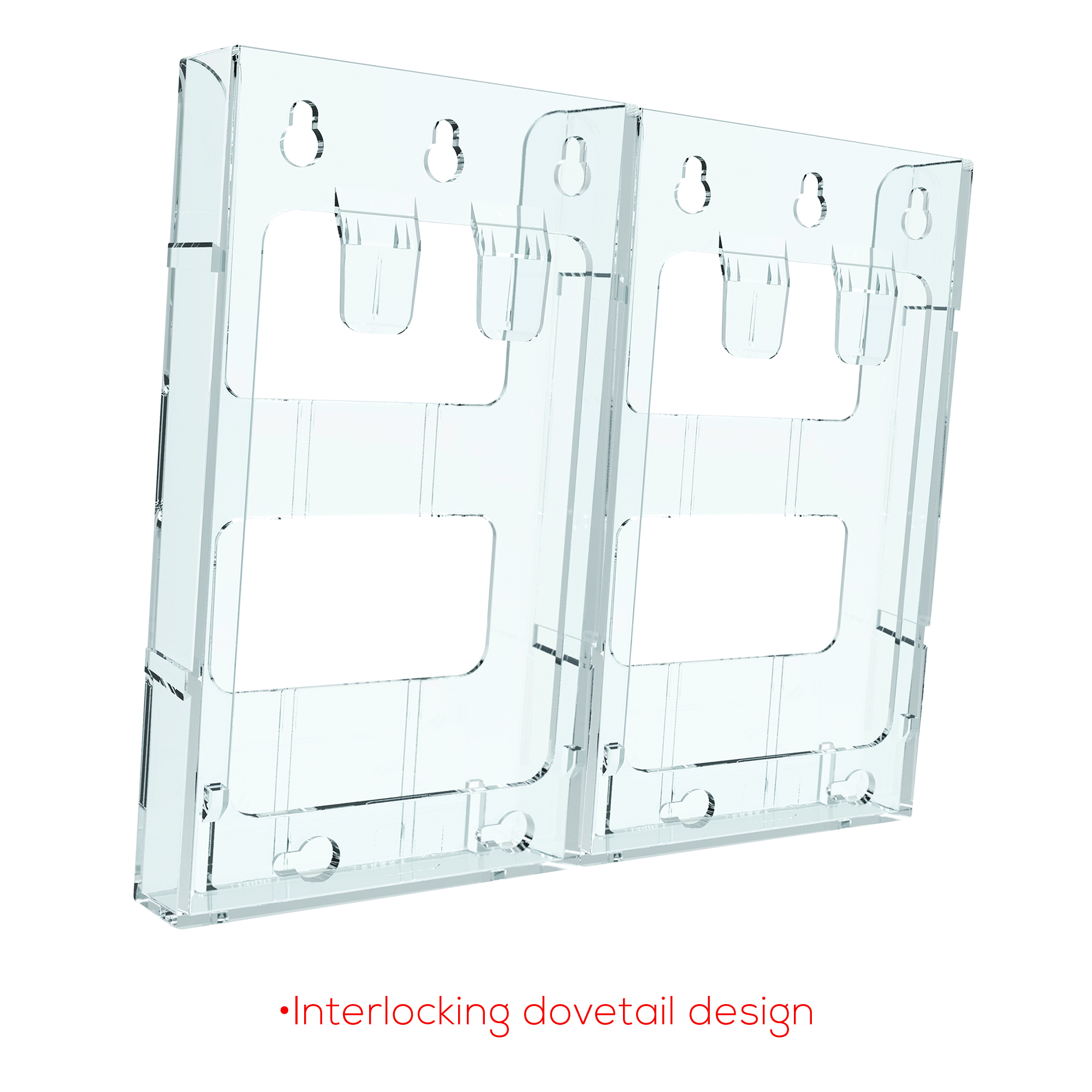 Maximize your wall space with the Lit Loc® interlocking literature display—a versatile, customizable solution for showcasing your materials. Easily dovetail multiple units side-by-side to create sleek, multi-tiered displays that fit your environment perfectly. Whether linked horizontally or stacked vertically, these adaptable literature holders provide endless possibilities for a tailored, space-saving presentation.