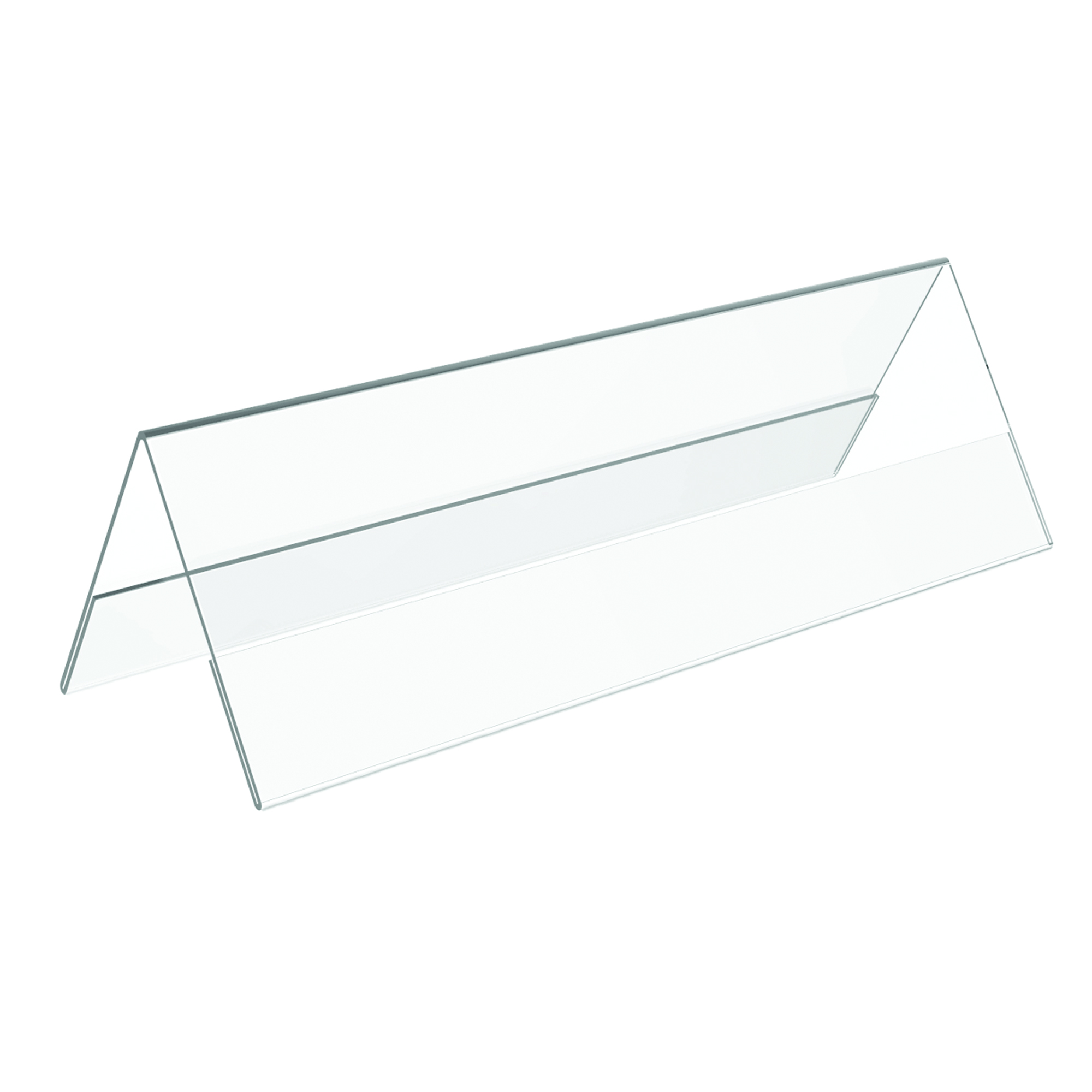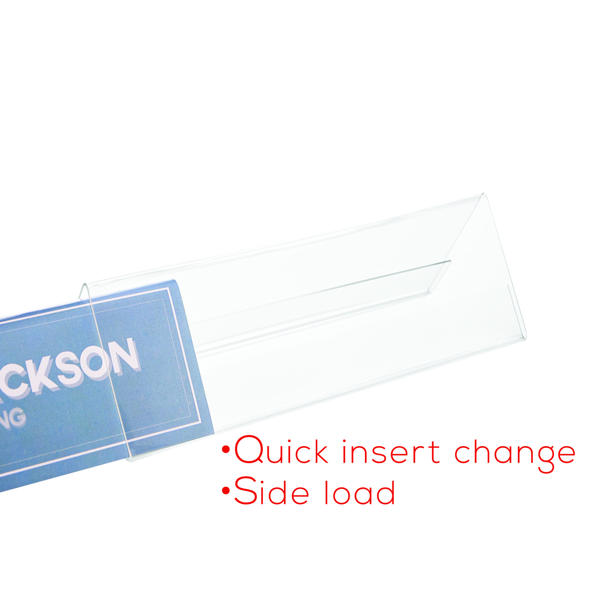 Desktop Name Holder is a clear plastic tent-style name holder that features a side load design that is perfect for meetings or new hires.