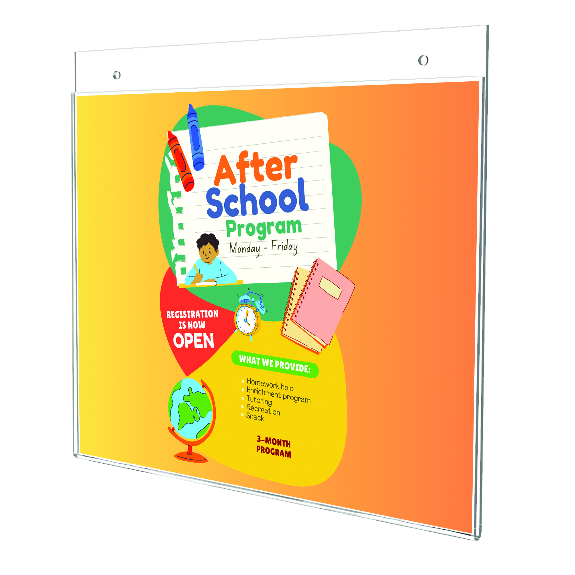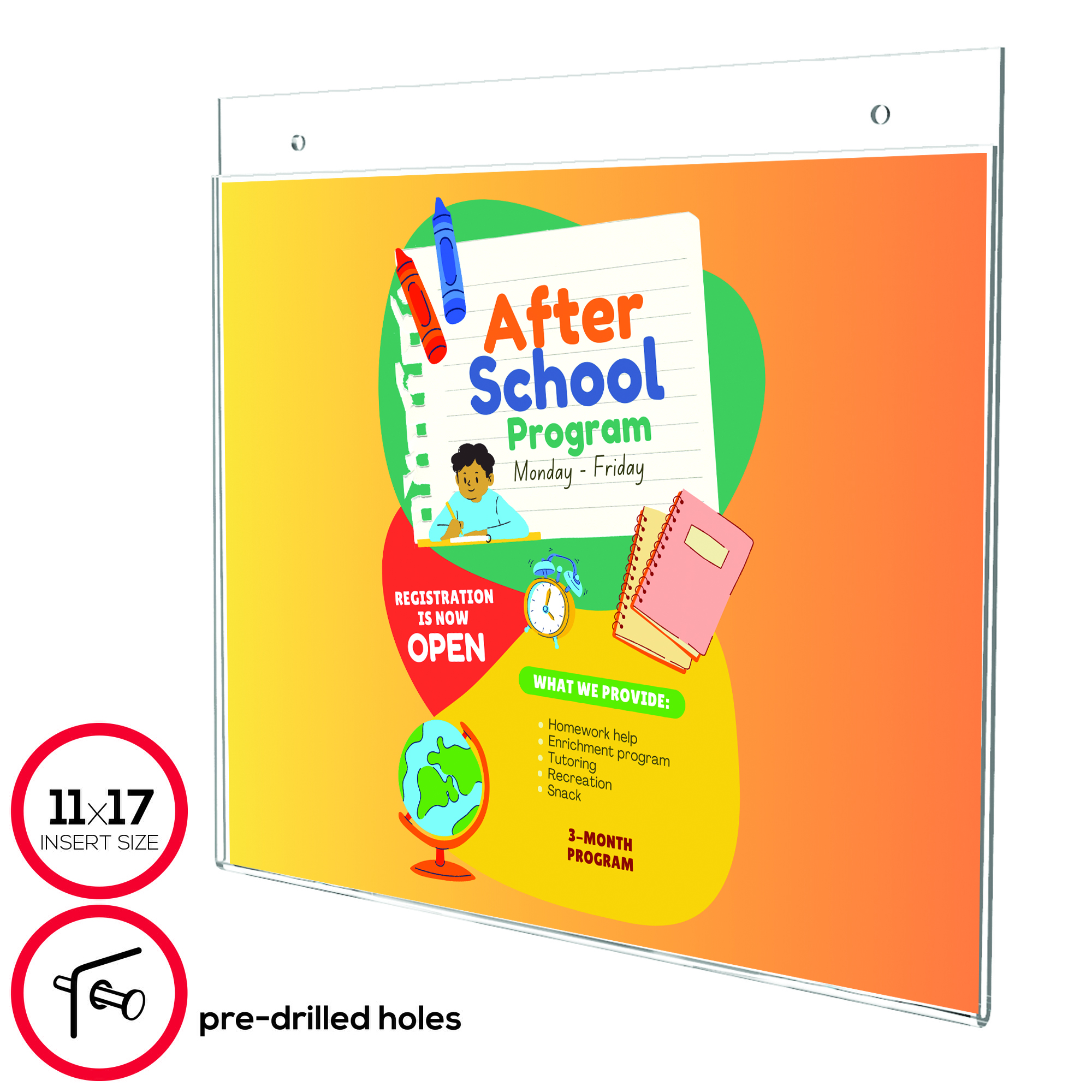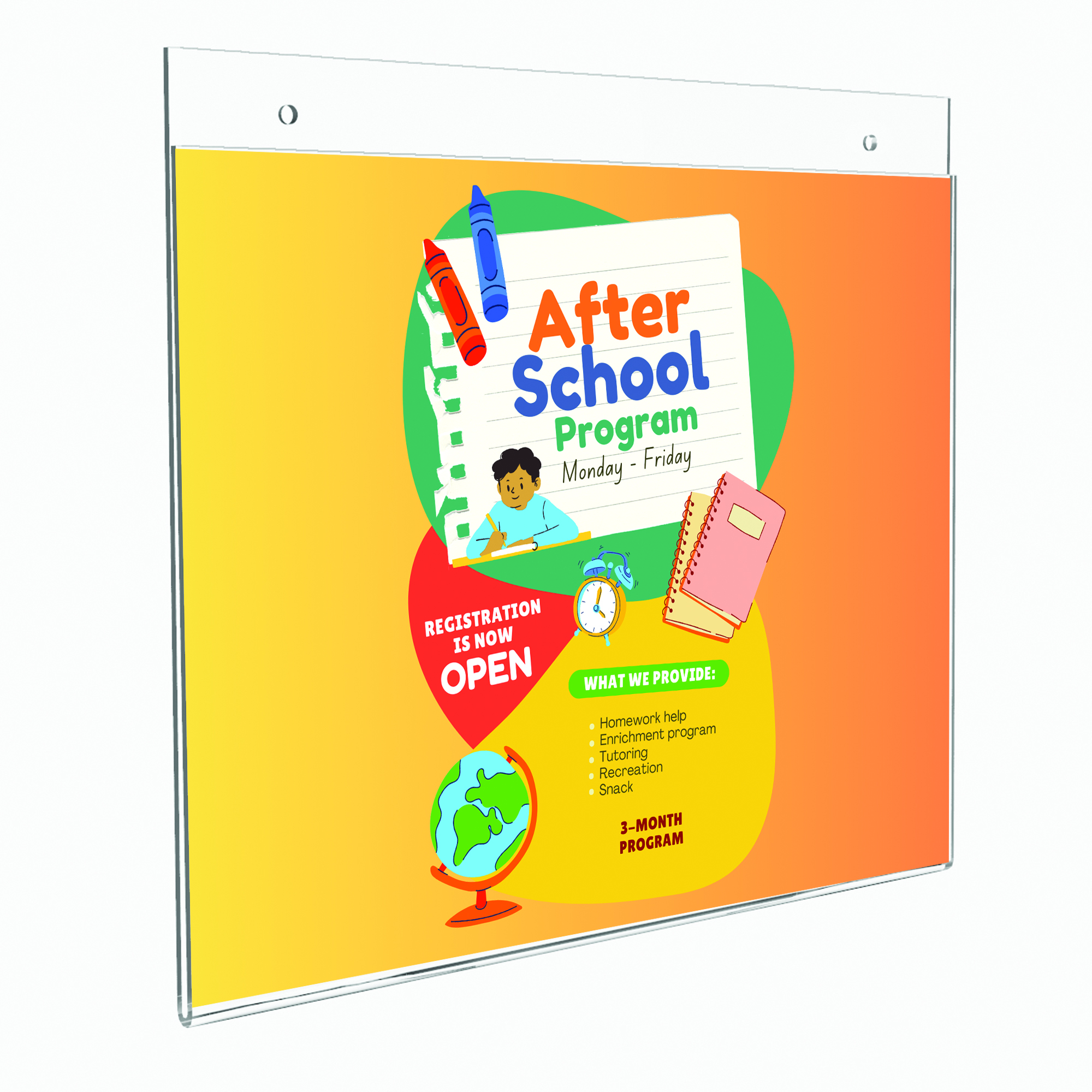 Take advantage of empty wall space and save valuable counter space with these convenient, easy-to-use wall mount sign holders. The transparent design offers full visibility to your message. Perfect for any retail or commercial setting, these sign holders attract attention and are an effective way to communicate, protect and display information in a way that’s easy to use. Whether you’re advertising daily specials, promoting and event or delivering a message, these sign holders will grab your customer’s attention. Top-loading, plastic sign holders have pre-drilled holes to make wall mounting easy. Quickly change out inserts without removing them from the wall.