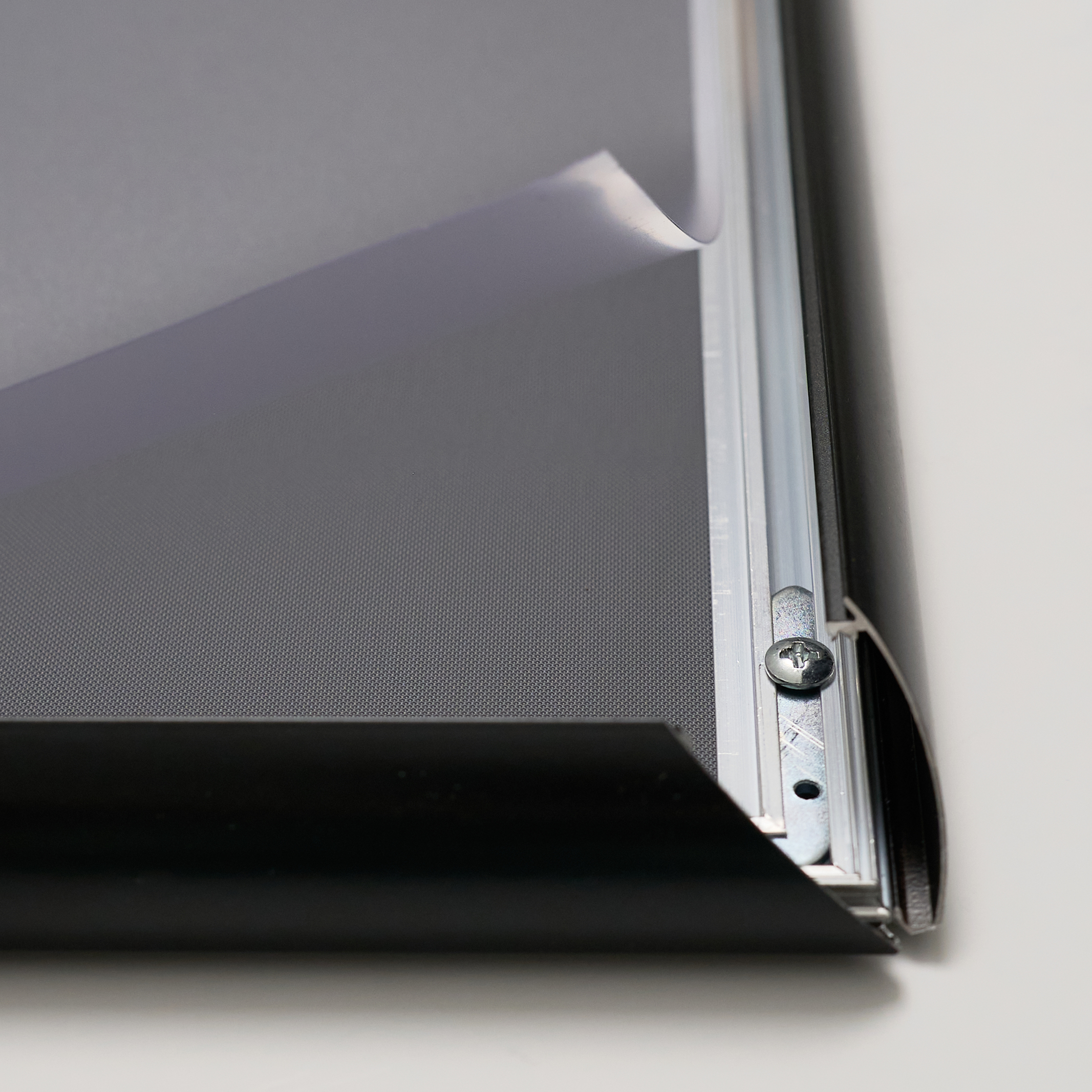 Present your message effortlessly with our one-sided Snap Frames, designed with a sleek, front-loading feature. These frames boast thin profiles for a contemporary look and offer hassle-free graphic interchangeability. Simply flip open all four sides, insert your graphic, and snap close. Your message remains safeguarded by a clear, anti-glare plastic print protector, and the durable, aluminum frame mounts easily with included mounting hardware. Whether you prefer vertical or horizontal display, this versatile frame adapts to your needs.