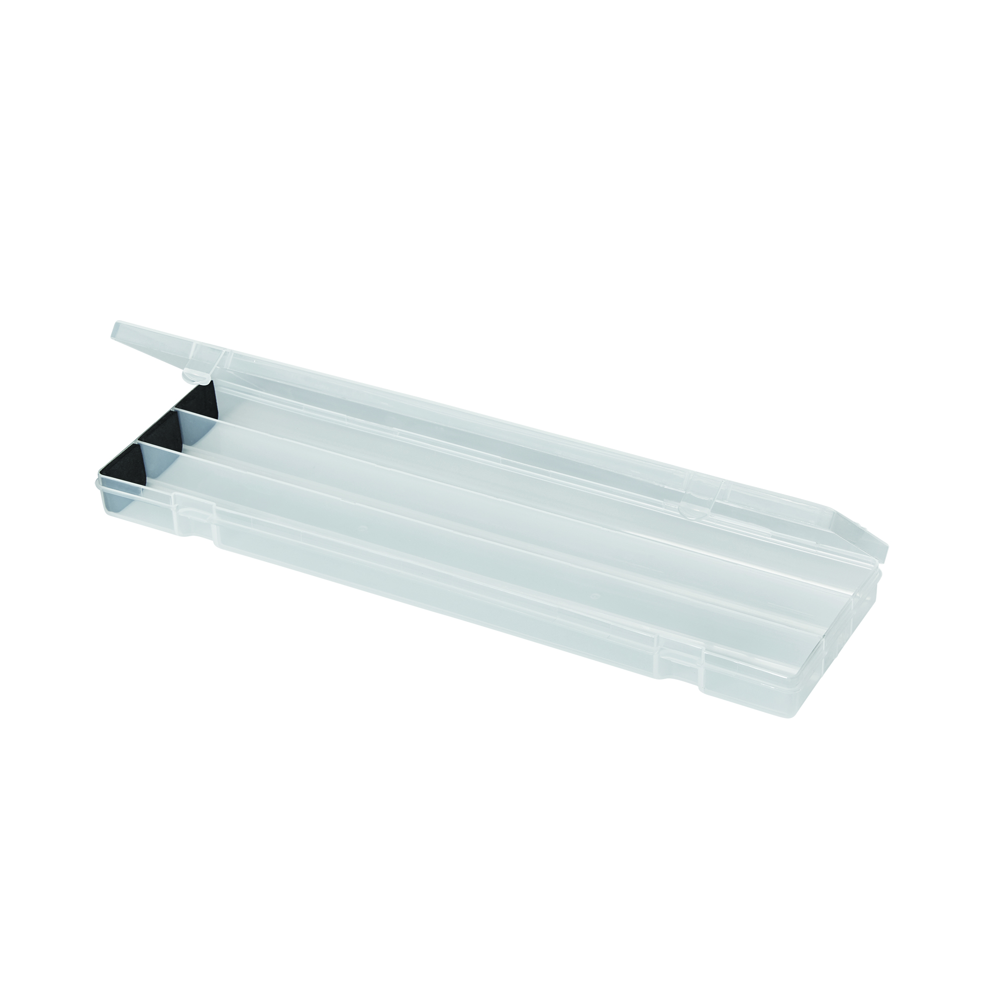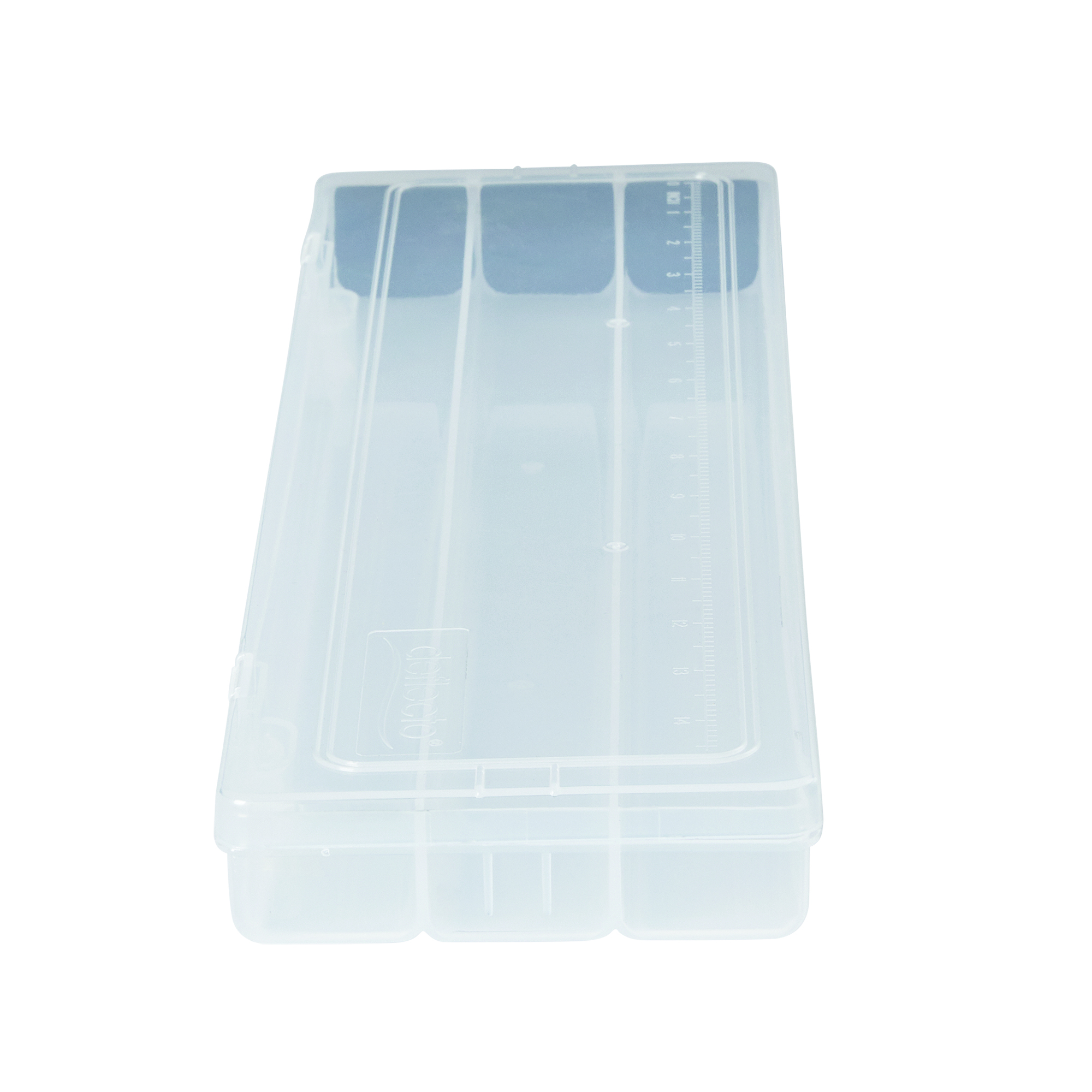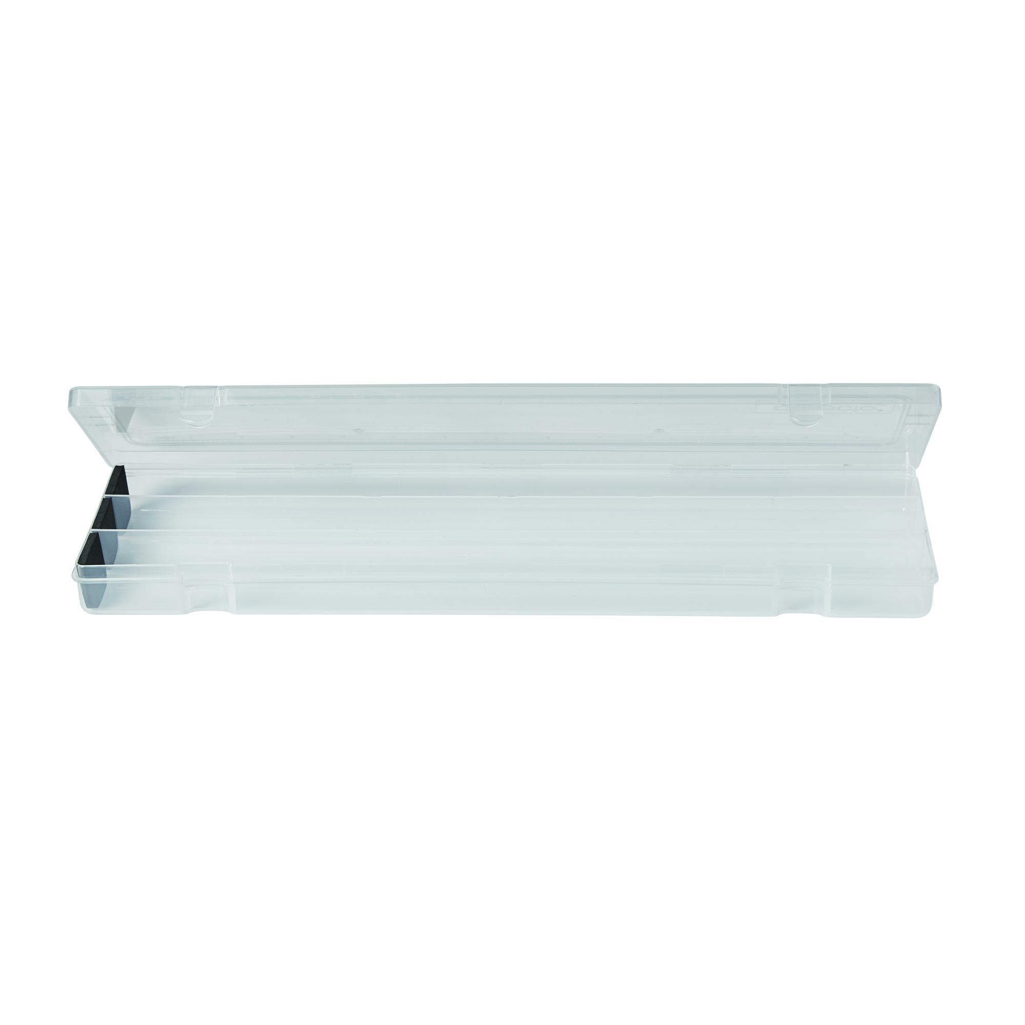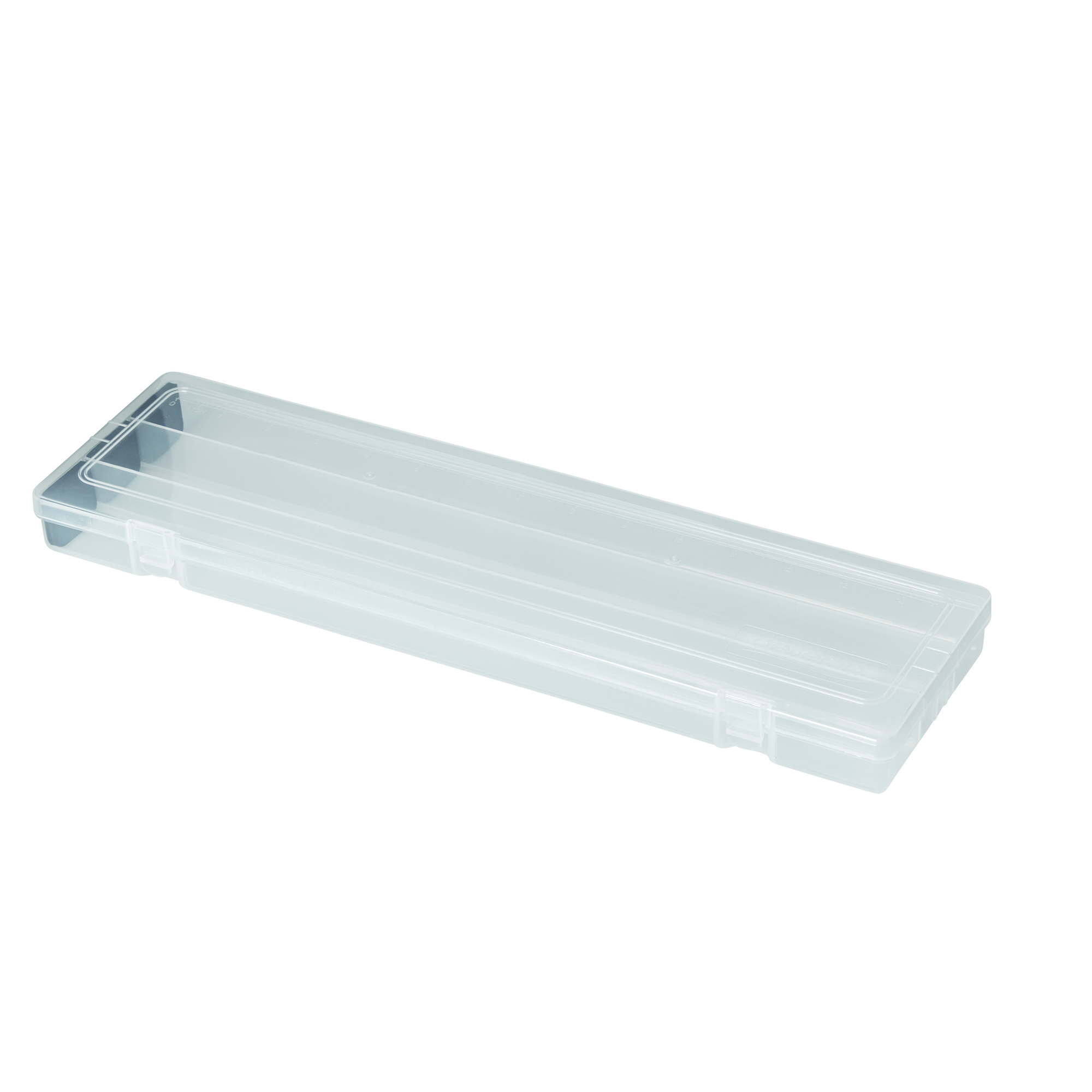 Organize paint brushes, colored pencils, and fine-point pens in this stylish Art Box from Deflecto. Designed for students and fine artists, this clear plastic case lets you see everything inside. The lid includes a ruler, so you always have one when you need it, and we added foam pads to prevent sharp tips from breaking.