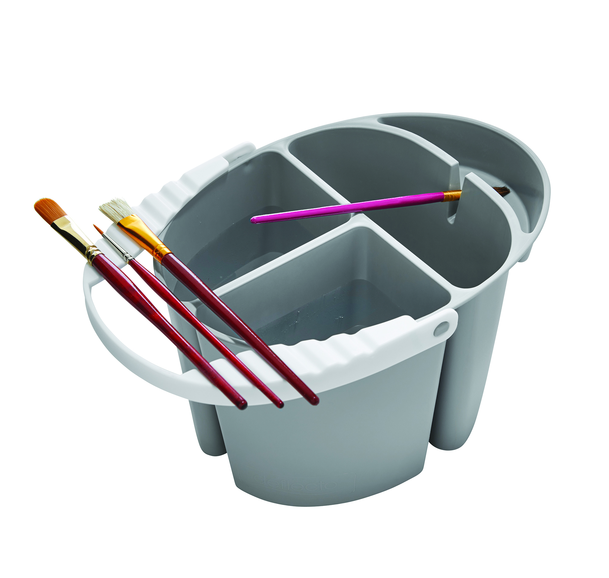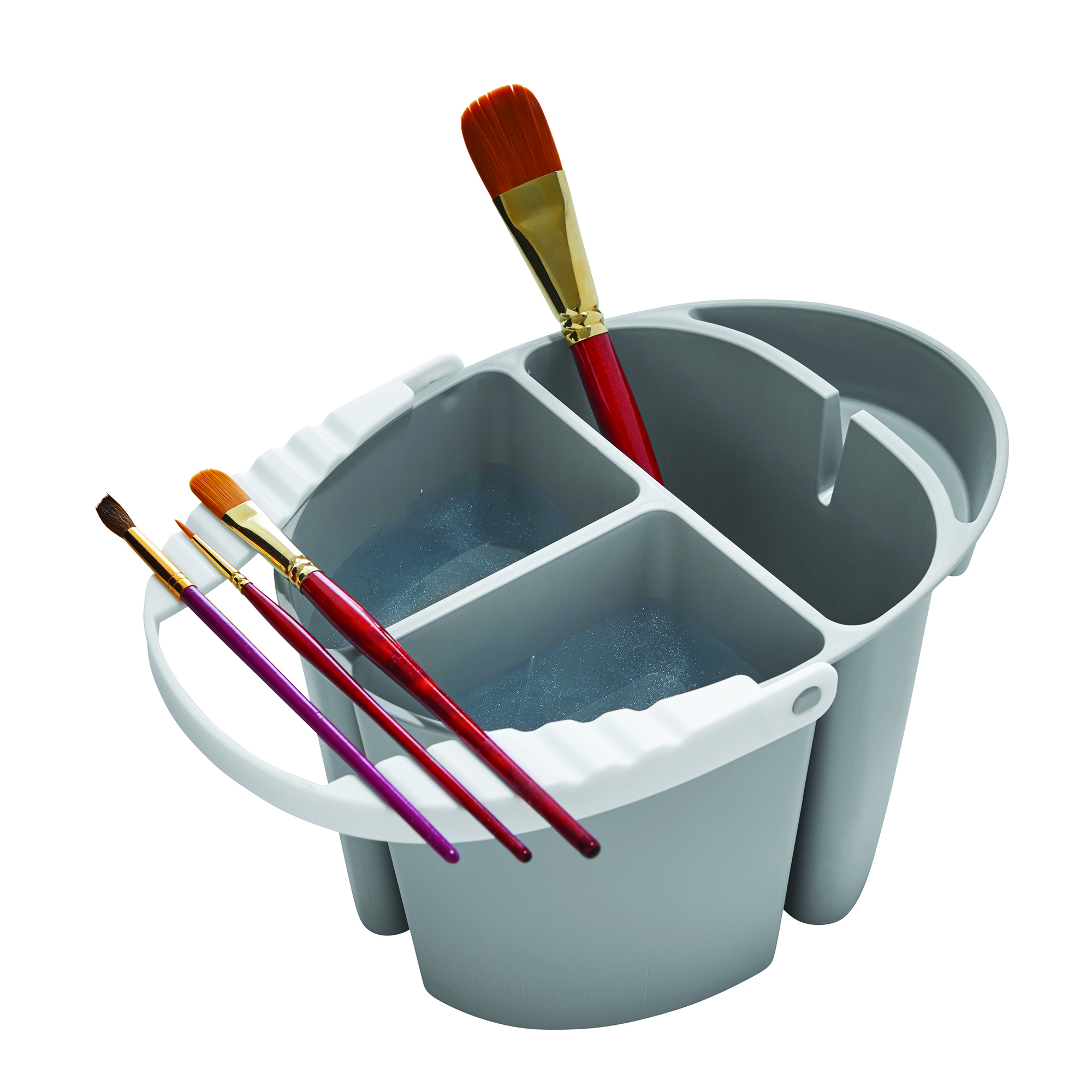 The Painter’s Companion makes cleanup easy and keeps paint from splattering onto floors and furniture. Deflecto designed a better water bucket with three deep sections for cleaning and rinsing paint brushes, a space for wet brushes to drip dry, and a ridged handle that holds clean brushes. Save time on water changes while protecting your floors with this all-in-one solution made especially for artists.