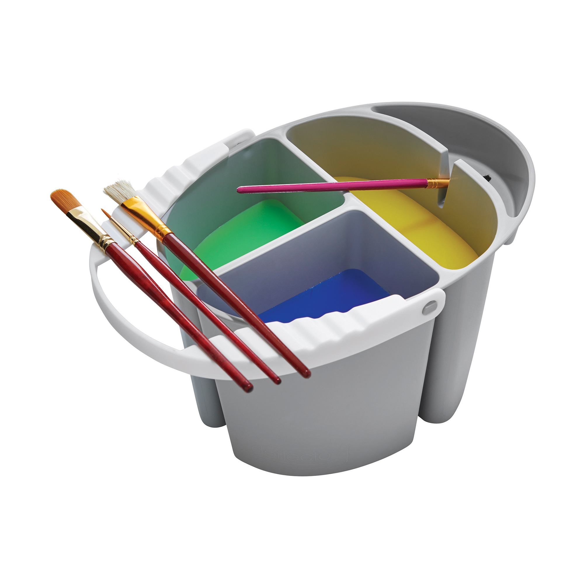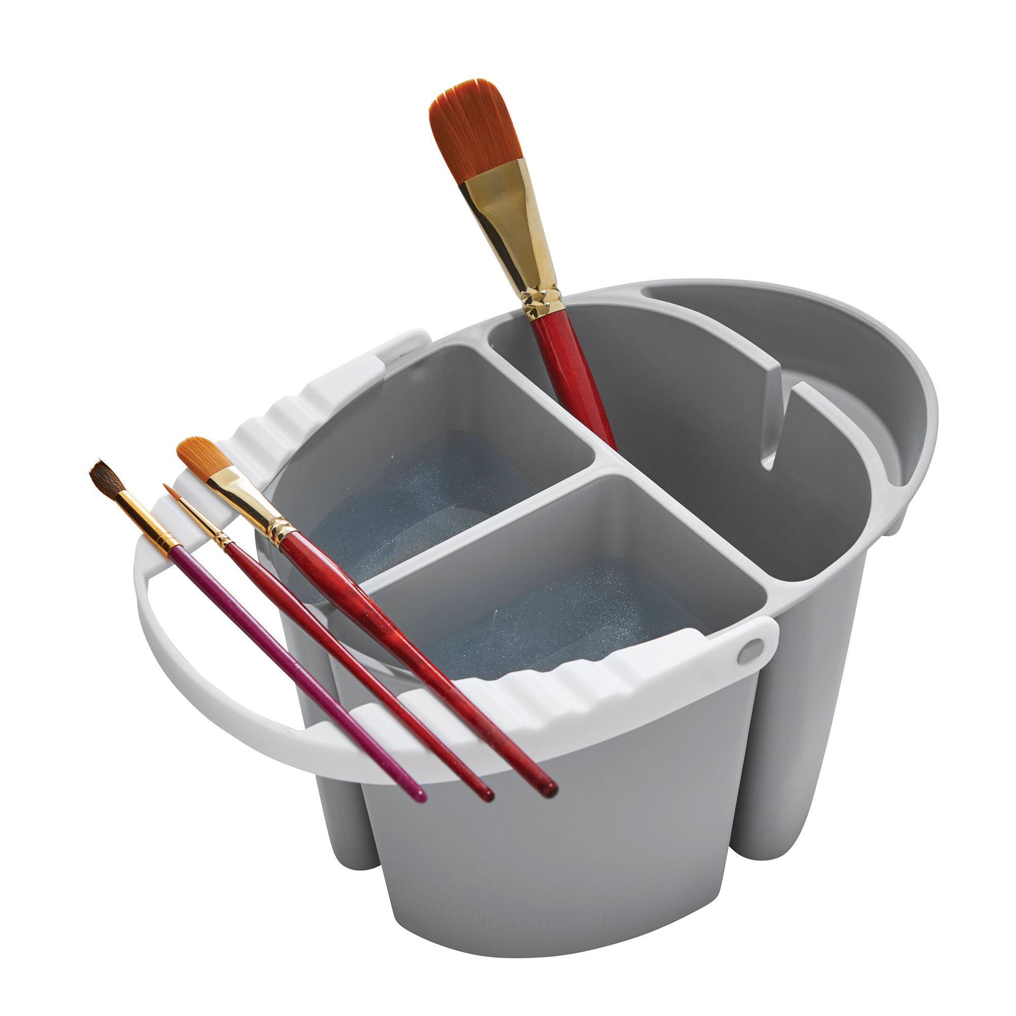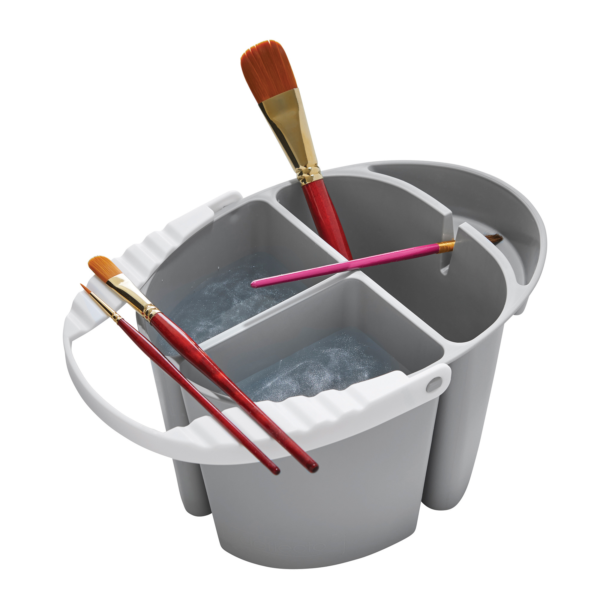 The Painter’s Companion makes cleanup easy and keeps paint from splattering onto floors and furniture. Deflecto designed a better water bucket for cleaning paint brushes. Save time on water changes while protecting your floors with this all-in-one solution made especially for artists.