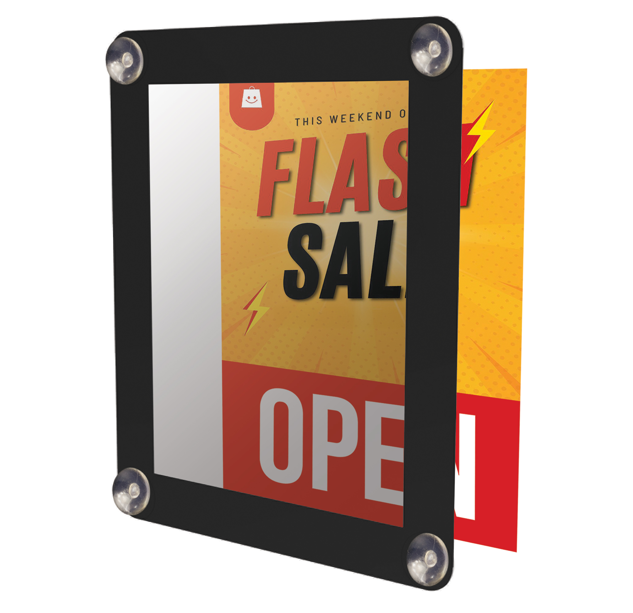 Window Display w/Suction Cups – 8.5″ x 11″ – Black